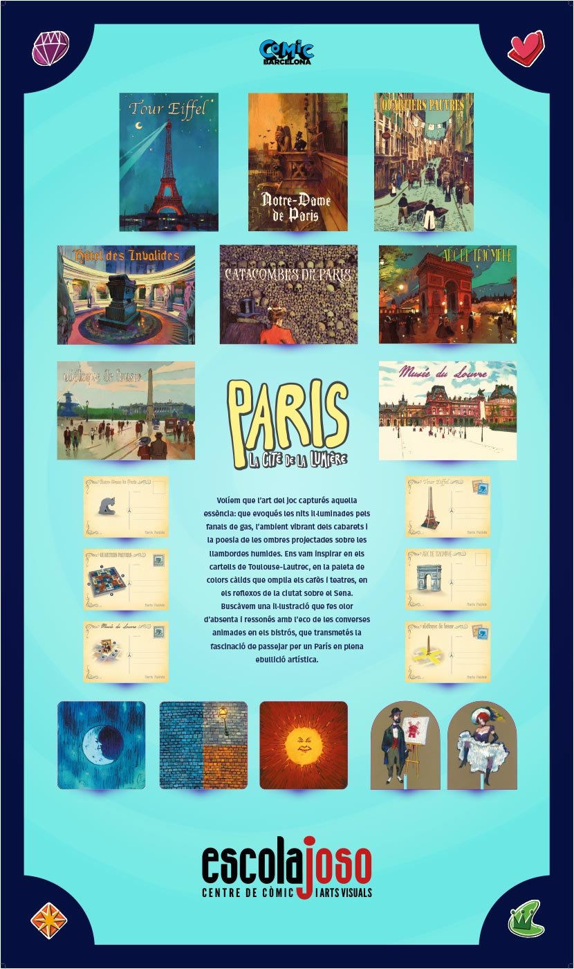 Aquesta exposició vol donar visibilitat a alguns dels talents locals que fan brillar els nostres jocs i que, amb el seu treball, enriqueixen enormement l’experiència lúdica. A més, la il·lustració per a jocs de taula és una sortida professional apassionant per als artistes gràfics. Jugueu amb nosaltres?