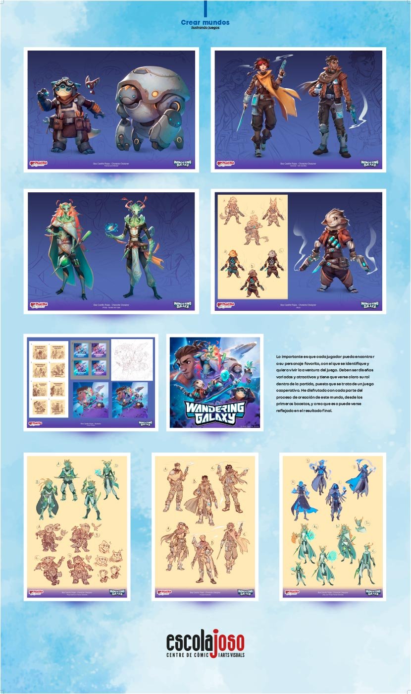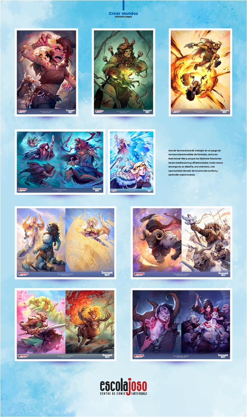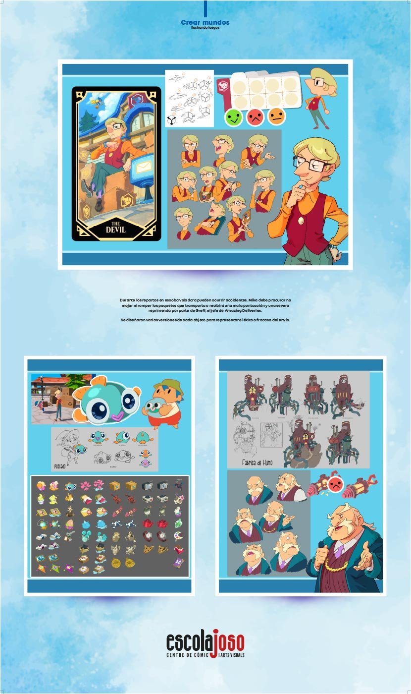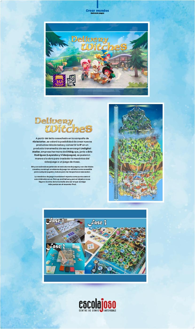 La relación del manga y los videojuegos viene de lejos. La historia del juego moderno no se puede entender sin el profundo empujón que el imaginario y la estética del arte nipón dejó en él. Durante muchos años, Japón ha sido la superpotencia definitiva en cuanto a la creación de videojuegos. Y, para muchos jugadores, fue el primer contacto con esta expresión artística, sus personajes y sus narrativas. En la actualidad, estamos disfrutando de un momento en el que los juegos de mesa, padres del videojuego, vuelven con fuerza para revivir una nueva era dorada. Hoy son ellos los que se alimentan de los imaginarios del videojuego. En esta exposición presentamos el trabajo de tres grandes artistas: Bea Castillo, Ernest Sala y Mado Peña, autores que, habiendo crecido y trabajado rodeados de manga y la cultura que los envuelve, dan vida a nuevos mundos y nuevos personajes en nuevos universos de videojuegos y juegos de mesa. Bea Castillo es una ilustradora y dibujante de cómics que en los últimos años se ha especializado como artista conceptual para juegos y videojuegos, como podemos ver en Wondering Galaxy, Summoner Wars y Creatures of Ara. Ernest Sala ha sido el artista principal en la creación del videojuego Mika and the Witch’s Mountain y, junto con Mado Peña, se han encargado de hacer también la adaptación del mismo mundo al recientemente anunciado juego de mesa Delivery Witches.